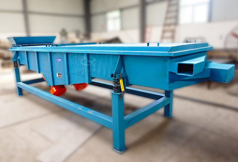 DZSF系列直線振動(dòng)篩為雙振動(dòng)電機(jī)驅(qū)動(dòng)。當(dāng)兩臺(tái)振動(dòng)電機(jī)做同步、反向旋轉(zhuǎn)時(shí),其偏心塊所產(chǎn)生的激振力在平行于電機(jī)軸線的方向相互抵消,在垂直于電機(jī)軸的方向疊為一合力,因此篩機(jī)的運(yùn)動(dòng)軌跡為一直線。
