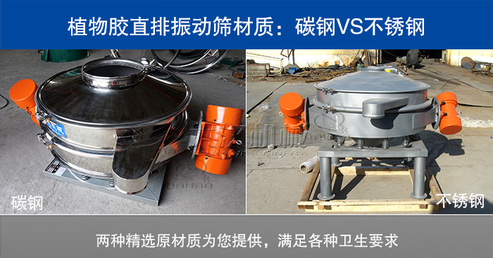 植物膠篩分可用的直線篩有兩種材質(zhì):碳鋼、不銹鋼;碳鋼材質(zhì)的植物膠1200型直排振動篩熱處理和機(jī)械性能好,同時價(jià)格便宜,但是長時間的使用會發(fā)生腐蝕、生銹等問題,不適合用于對衛(wèi)生行業(yè)要就較高的物料和企業(yè);而不銹鋼材質(zhì)耐酸耐堿、防腐防銹、衛(wèi)生,廣泛用于化工、食品、醫(yī)藥等行業(yè)。根據(jù)植物膠物料特性,大漢推薦您使用不銹鋼材質(zhì)的1200型直排振動篩進(jìn)行篩分。